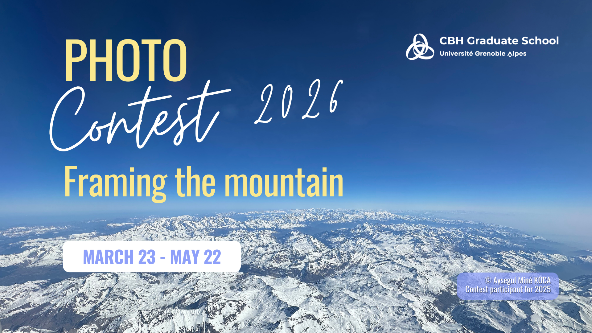 The CBH Graduate School is launching its photo contest for Master's, PhD students & staff within its scope. This year, the theme was chosen by the community on social media, and the one selected is “Framing the Mountain”! You have until May 22, 2026 to send us your best shot!