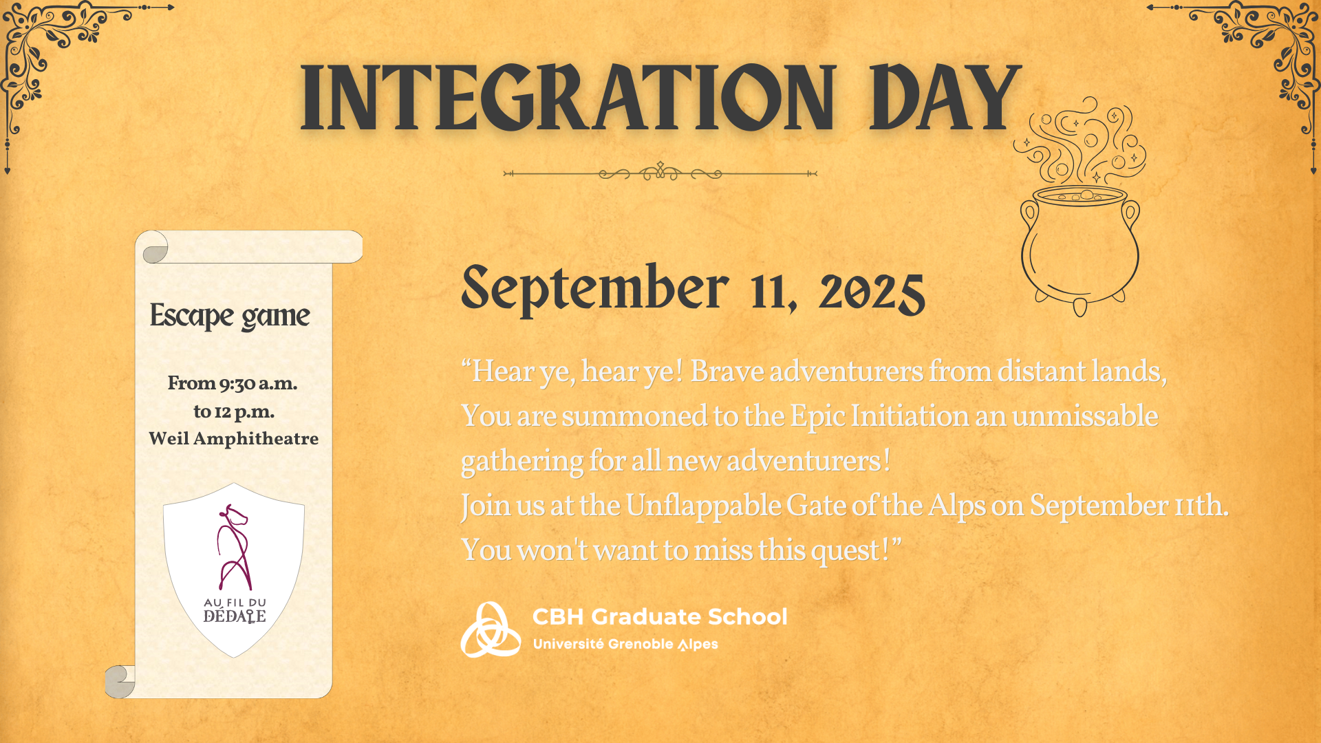 On the occasion of the orientation day organized by the CBH Graduate School, we invite all Master's students in biology, chemistry, and health to join us on Thursday, September 11, for a giant escape game on campus!